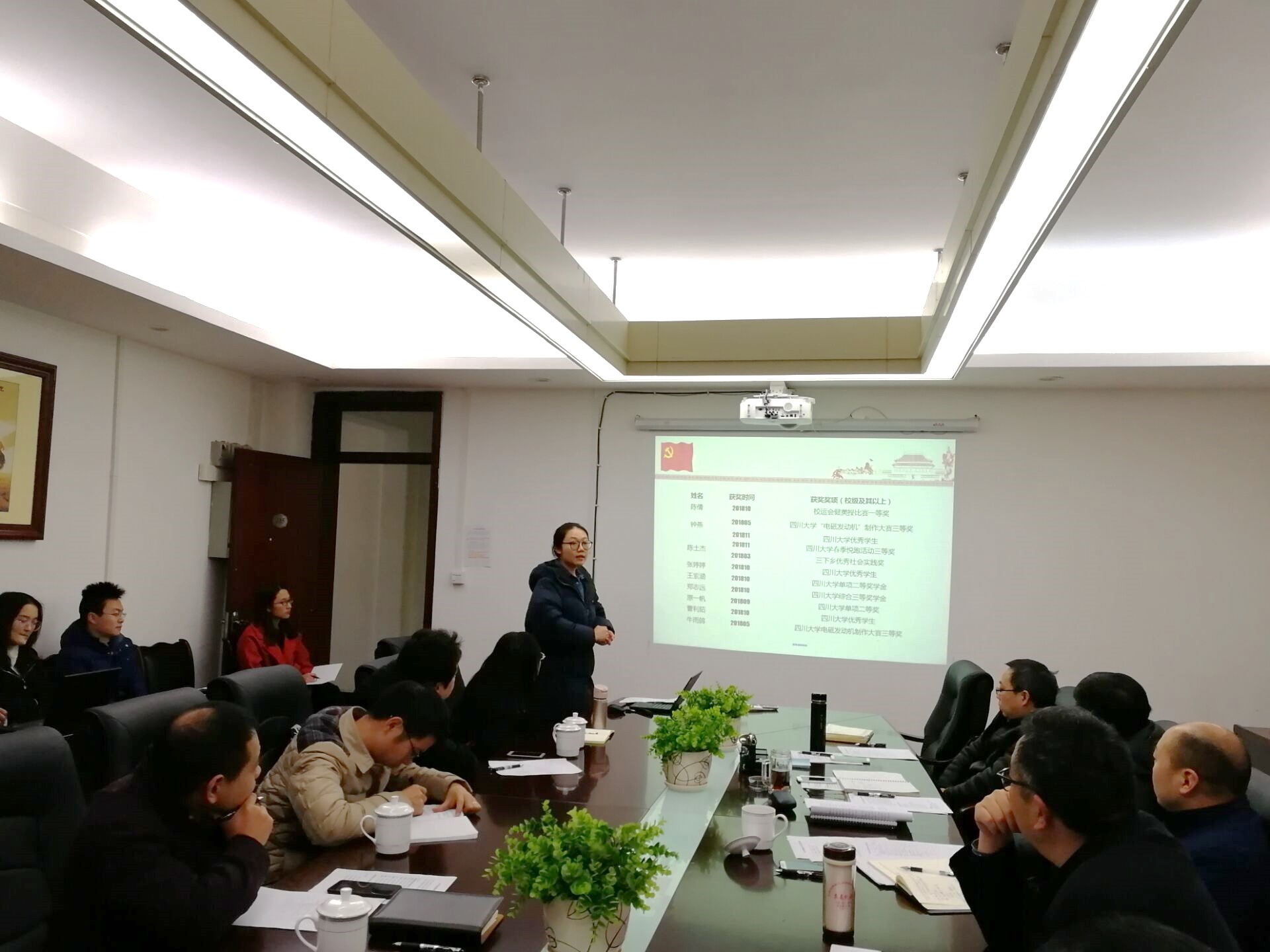 学院党委副书记、纪委书记李天友介绍了学院党支部考核背景和述职要求。学院党委根据《中国共产党支部工作条例(试行)》和《四川大学关于进一步加强和改进党支部建设的实施意见》,修订了2018年考核工作方案,从29个党支部中抽取三分之一、即10个党支部进行会议述职,争取3年内实现党支部书记抓党建会议述职全覆盖。
