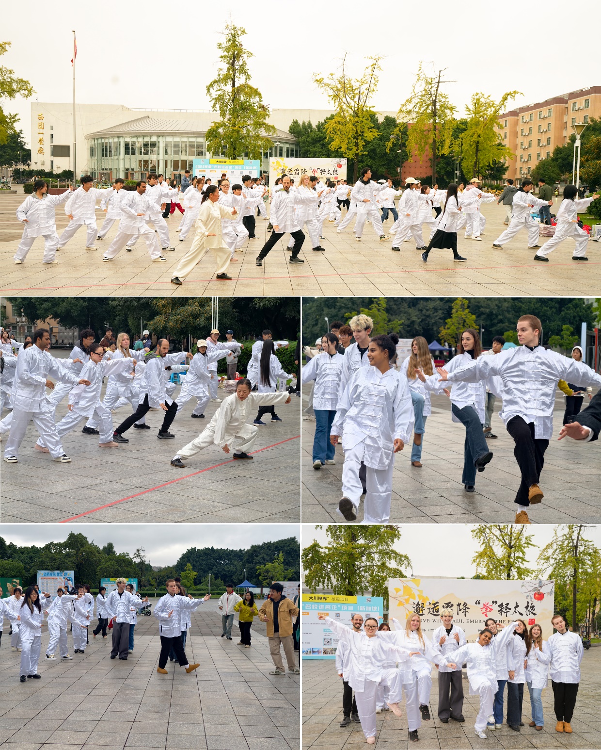 为传承中华优秀传统文化,弘扬太极智慧,促进中外学子交流,由四川大学留学生管理办公室“留传经典·蜀韵川大”精品培育项目资助立项,四川大学化学工程学院与留学生管理办公室共同主办的“节令流转,和合共生”留学生节气文化与传统体育融合之旅,于2025年10月24日在四川大学江安校区青春广场举办了“邂逅霜降,“拳”释太极”主题太极活动,来自多个学院的留学生和本校本、硕、博学生共同参与。