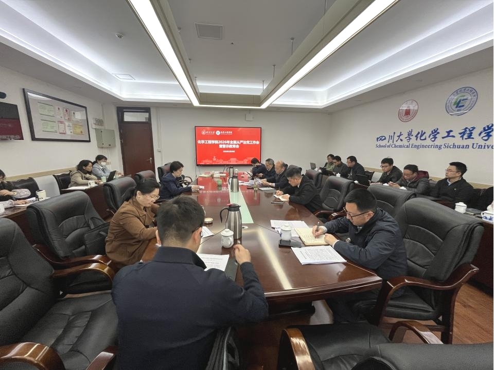 3月30日上午,化学工程学院在望江校区化工楼235会议室召开2026年度全面从严治党工作会暨警示教育会。会议深入学习贯彻二十届中央纪委五次全会精神,全面落实学校2026年全面从严治党工作会议部署,研究安排学院重点任务。学院领导班子成员、党委委员、各系级单位负责人、教工党支部书记、全体科级干部和院长助理等参加会议。会议由学院党委副书记兼纪委书记卿培亮主持。