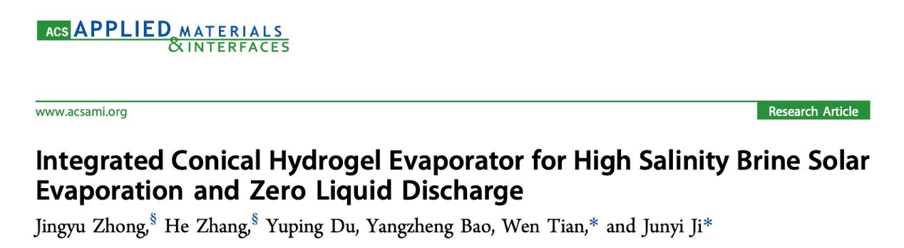 近日,化学工程学院23级本科生钟婧宇以第一作者身份在高水平期刊ACS Applied Materials & Interfaces发表太阳能界面蒸发器设计应用的研究论文“Integrated Conical Hydrogel Evaporator for High Salinity Brine Solar Evaporation and Zero Liquid Discharge”。该论文依托大学生创新训练计划“锥形水凝胶蒸发器定向积盐原理与高效盐回收”,实现了本科生科研创新与实践能力的全方位培育。2023级本科生钟婧宇和2024级博士生张赫为共同第一作者,吉俊懿教授和田文高级实验师为共同通讯作者,四川大学化学工程学院为论文唯一通讯单位。