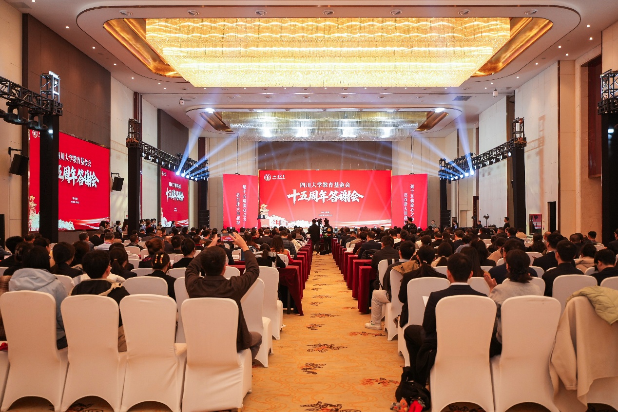 11月22日,四川大学教育基金会十五周年答谢会在学校国际学术交流中心圆满举行。本次答谢会以“聚十五载爱心之力,启百卅大川征程”为主题,汇聚了业务主管单位领导、爱心捐赠人及捐赠单位代表、各地校友会代表、校领导、基金会理事监事、学院及职能部门负责人、获奖学生代表,共同回顾基金会十五年来的历程,见证爱心成果,共商未来发展。