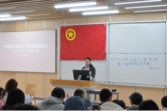 四川大学化学工程学院第三十届团校第三次行课于11月23日上午在江安校区综合楼C座C304顺利进行。本次活动中由青年讲师团成员周一山同学和化学工程学院“青马工程”(凌志班)第三期学员、百川宣讲团成员杨丹同学担任主讲嘉宾。化学工程学院全体团校学员、青马工程“凌志班”学员参加本次活动。
